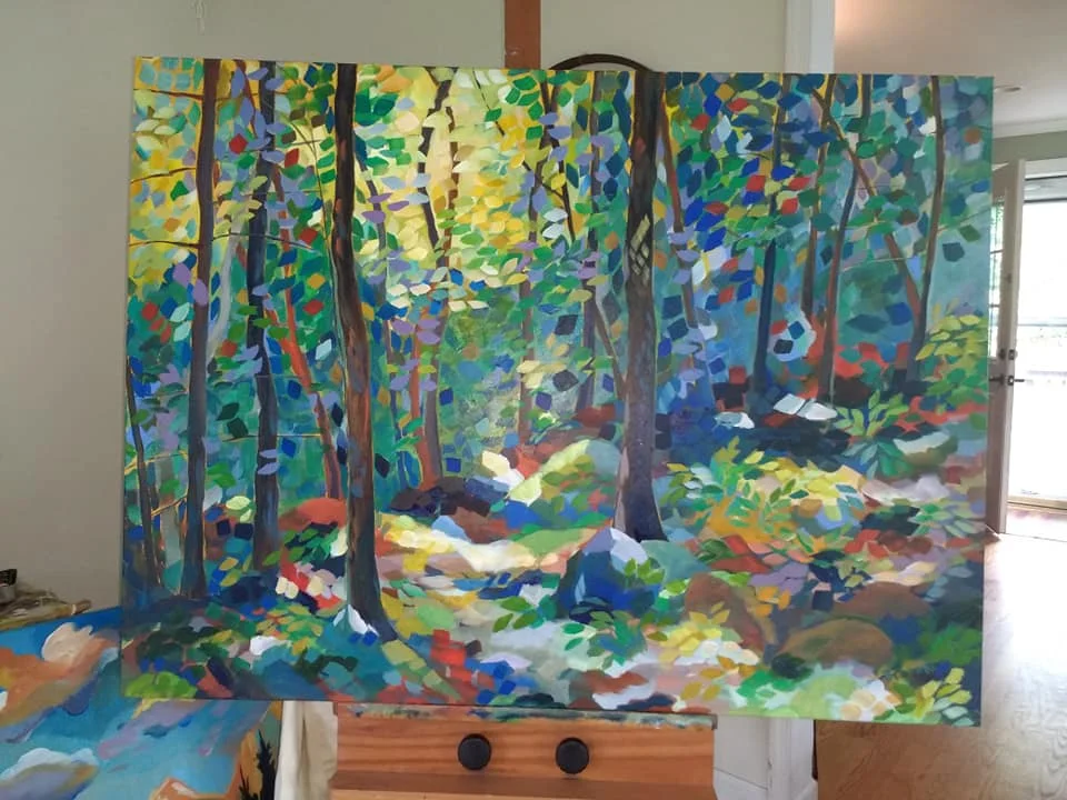 This prayer and painting "Finding Light" (36" x 108") I created for Finding Hope 2019. They will be on display at Bryn Athyn College, on April 6th, as we focus on expanding our capacity to be present with one another in hard times. We talk about the impact of suicide, addiction, domestic violence, sexual abuse, and mental illness and show up with support, compassion, and resources. Photos Include some of the creative process, including the Finding Hope team writing prayers on the canvases before I painted.